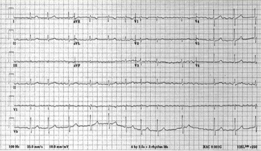 • Ausencia de ondas P: Pueden verse, ondas pequeña e irregulares denominadas ondas f (de fibrilación).