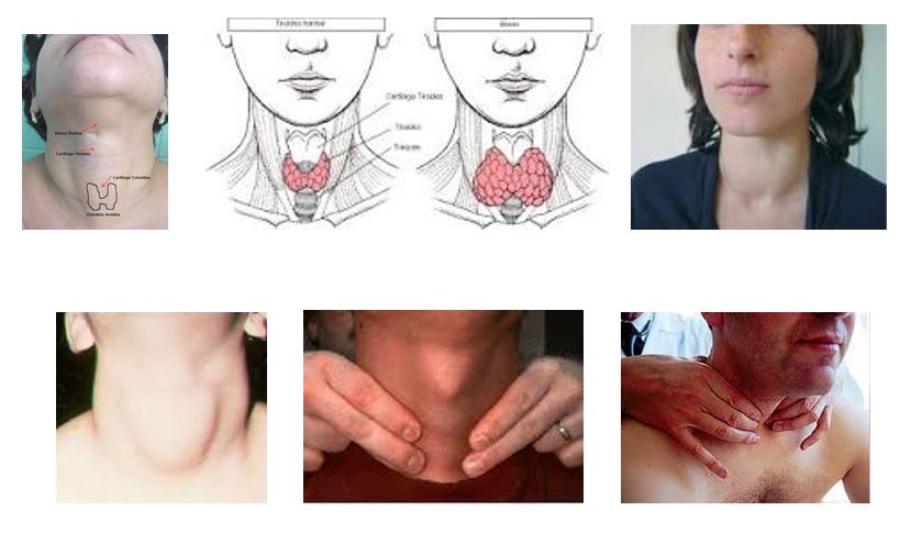 Bocio difuso: Es simétrico, uniforme, de superficie lisa, tamaño moderado de consistencia blanda por incremento de la glándula tiroides ahora palpable. Se aprecian fácilmente las pulsaciones por el tacto con el soplo sistólico a la auscultación. Sobre la zona se evidencia un enrojecimiento cutáneo notorio llamado (signo de Marañon). El bocio Basedowiano no produce compresión a diferencia del bocio simple.