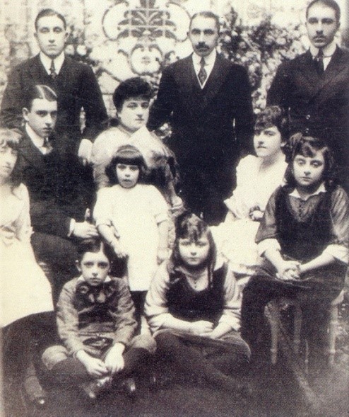 Con sus nueve hijos y su esposa Rita Gutiérrez. 1914 (A.G.N.)
